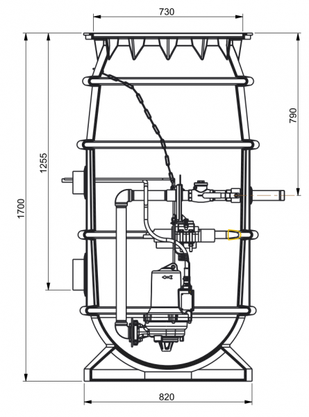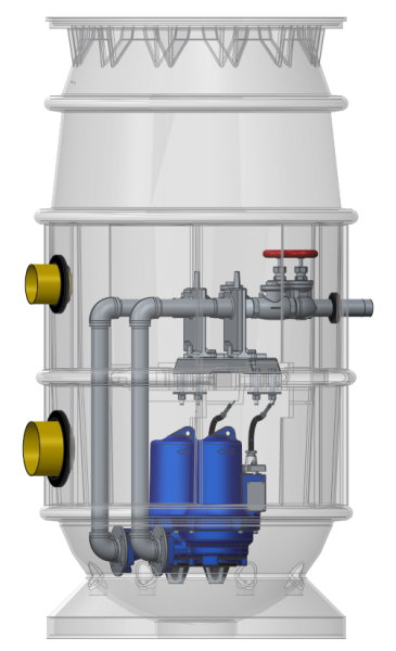 - Sammelschacht aus Kunststoff mit nahezu ablagerungsfreiem Pumpensumpf